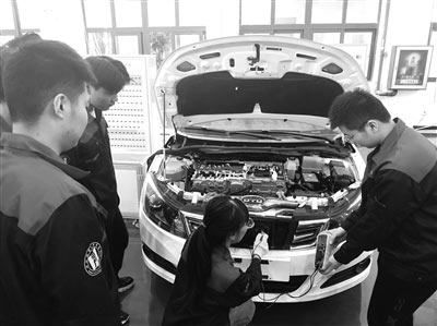 溫州職業技術學院瑞安學院新能源汽車專業教師在新能源汽車實訓基地給學生講解電動汽車的工作原理。陳先池 攝