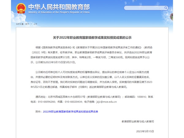 國家教學(xué)成果獎是我國教育領(lǐng)域最高層次的獎勵,職業(yè)教學(xué)成果獎代表職業(yè)教育教學(xué)改革創(chuàng)新的最高水平,每4年評選一次。2022年職業(yè)教育國家級教學(xué)成果獎有1386項申報,最后評出572項(含高等職業(yè)教育),獲獎率為41%,浙江省有8項中職教學(xué)成果獲獎。