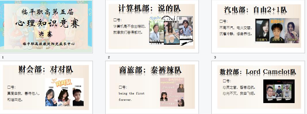 經過個人賽的角逐,每個專業部選出了3名高手組成專業部代表團,并為自己的代表隊取了特別的名字與口號。