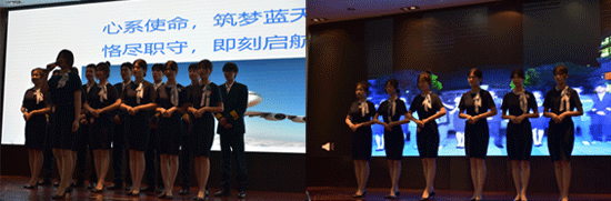 2208班帶來的作品《匠心筑夢,未來可飛》講述了要想成為一名氣質出眾、禮儀標準、素質過硬的航空乘務員,不僅需要具備一定的文化素養,還應擁有良好的職業素養,這些都離不開日常的艱苦訓練。