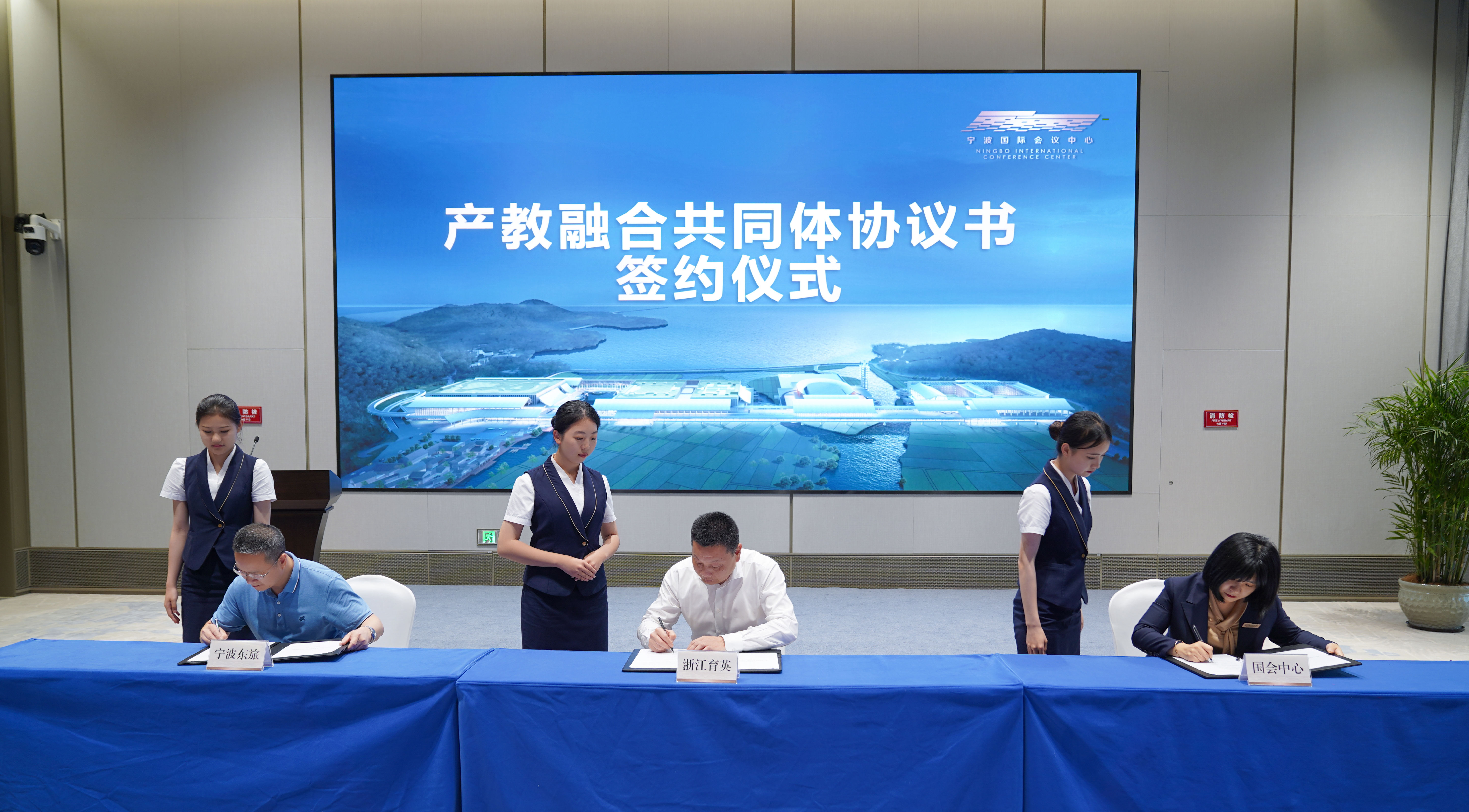 6月19日下午,寧波國際會議中心、寧波東錢湖旅游學校、浙江育英職業技術學院三方簽約結為產教融合共同體,以“升級”模式開啟高端服務人才培育的新探索,推進校企合作的新實踐,打造產教融合的新嘗試。