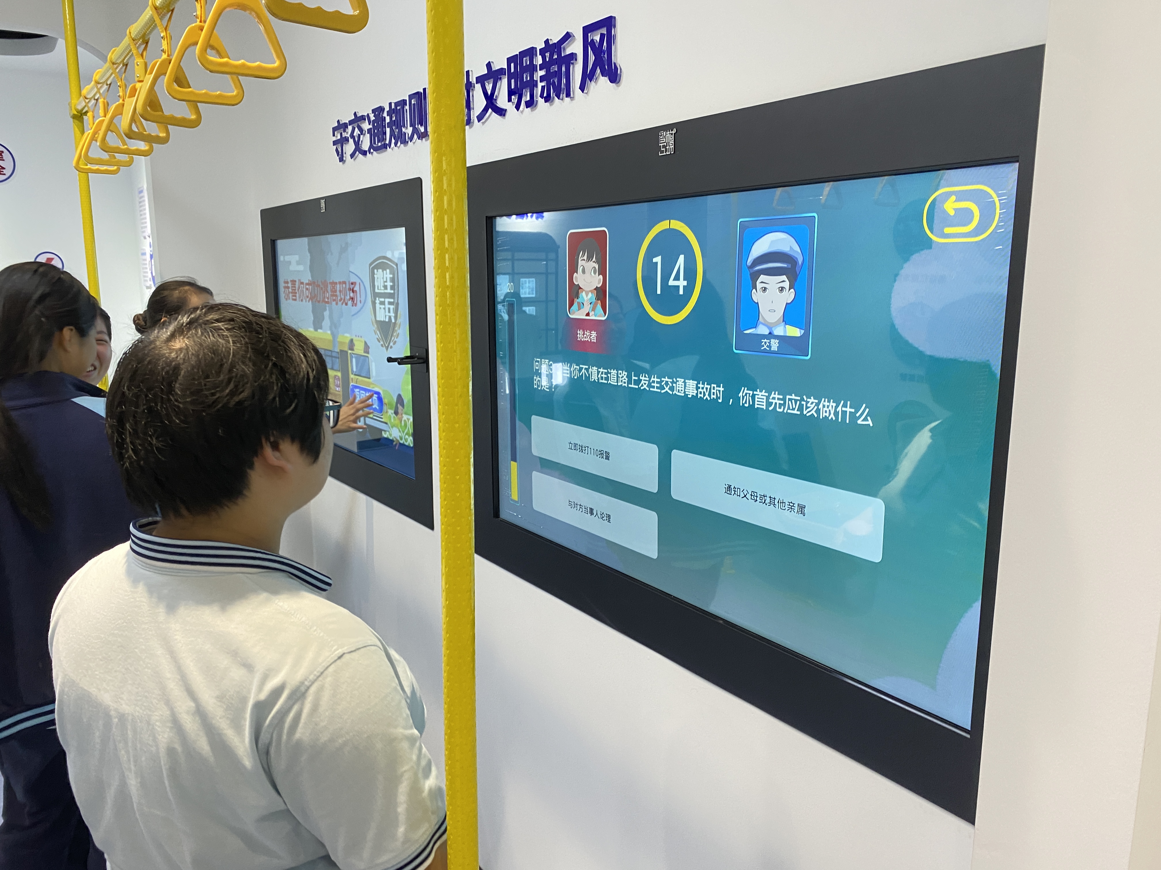遞鋪分院老師、浙江省紅十字會二級救護師丁柏偉首先向大家詳細講解心肺復蘇和氣道異物梗阻的相關知識及現場教學救護方法,帶領大家體驗認識生命模塊中人的一生、生命如歌及三救三獻三個體驗室,通過視聽和互動,讓學生代表們充分認識生命的寶貴。隨后,學生們邊參觀邊體驗,通過老師的講解,了解到地震知識、交通安全、家庭安全、防觸電知識。學生代表們與丁老師積極互動,體驗各種危險發生時該如何應對,教學氣氛融洽,現場時不時響起熱烈的掌聲,培訓取得良好的效果。