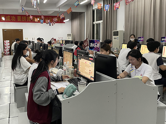 “親,有什么可以幫您?”“親,我們會盡快為您安排發(fā)貨,請耐心等待。”都說養(yǎng)“兵”千日,用“兵”一時。平時的知識與技能終于可以在這里大展身手了。在學(xué)校的6號機(jī)房,30余名學(xué)生分成兩個小組,通過“千牛”和“京麥”兩個平臺分別與天貓、京東的買家溝通,緊張地處理著訂單。電商教學(xué)課堂變成了“6.18”活動的主戰(zhàn)場。