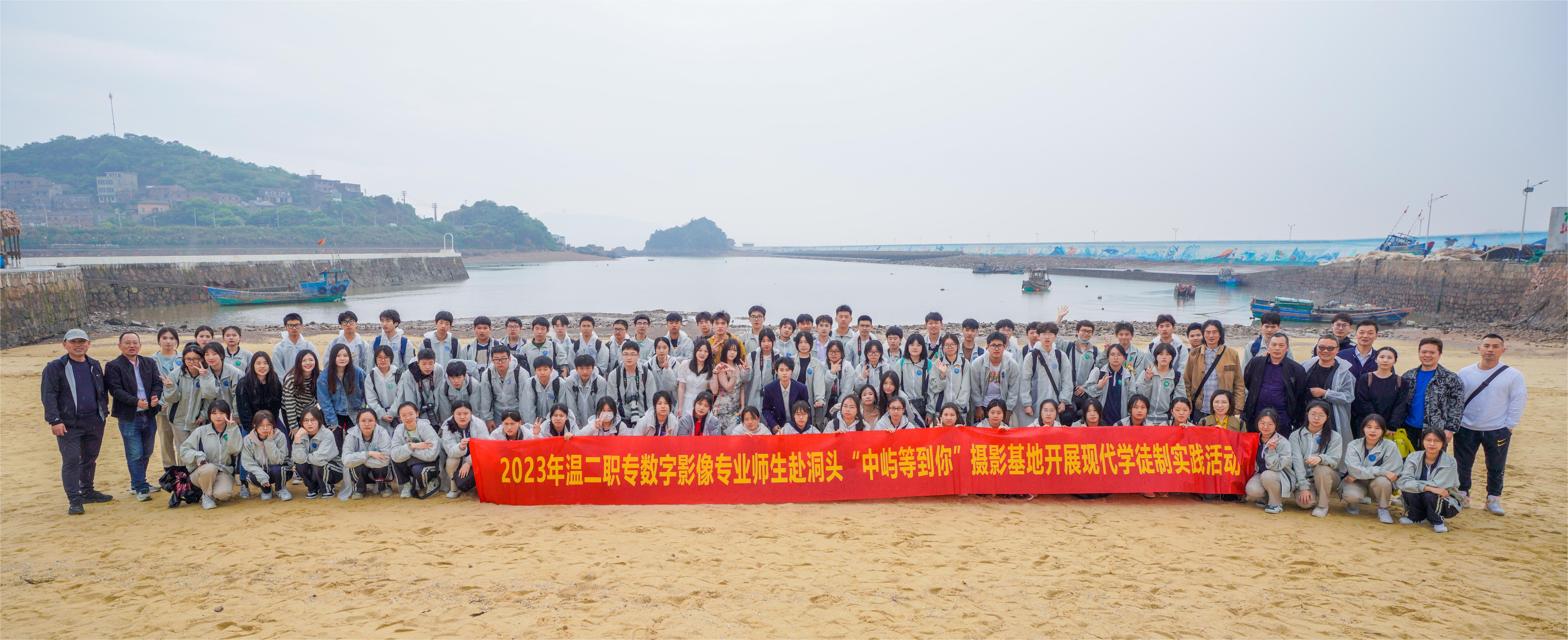 為深入推進產教融合、校企合作,進一步落實現代學徒制,近日,溫州市第二職業中等專業學校時尚藝術專業群100余位師生在副校長吳俊聲和鄭豪的帶領下,赴洞頭“中嶼等到你”攝影基地開展現代學徒制實訓活動。