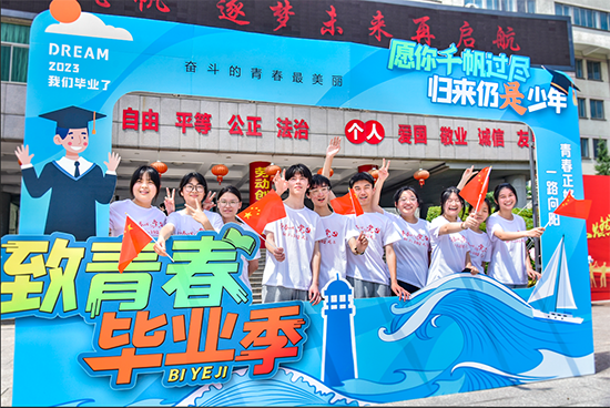 “希望同學們明白‘志向遠大,接受平凡;致敬美好,熱愛生命;無用只用,方為大用’這三句話的深刻含義,在今后的人生征程上,紅心向黨,揚起風帆,以責任、匠心和夢想為引領,逐夢未來再啟航!祝福所有的畢業生前程似錦,夢想成真!”畢業典禮上,金華實驗中學黨總支書記、校長俞秀玲在2023屆畢業生的“最后一課”深情寄語。