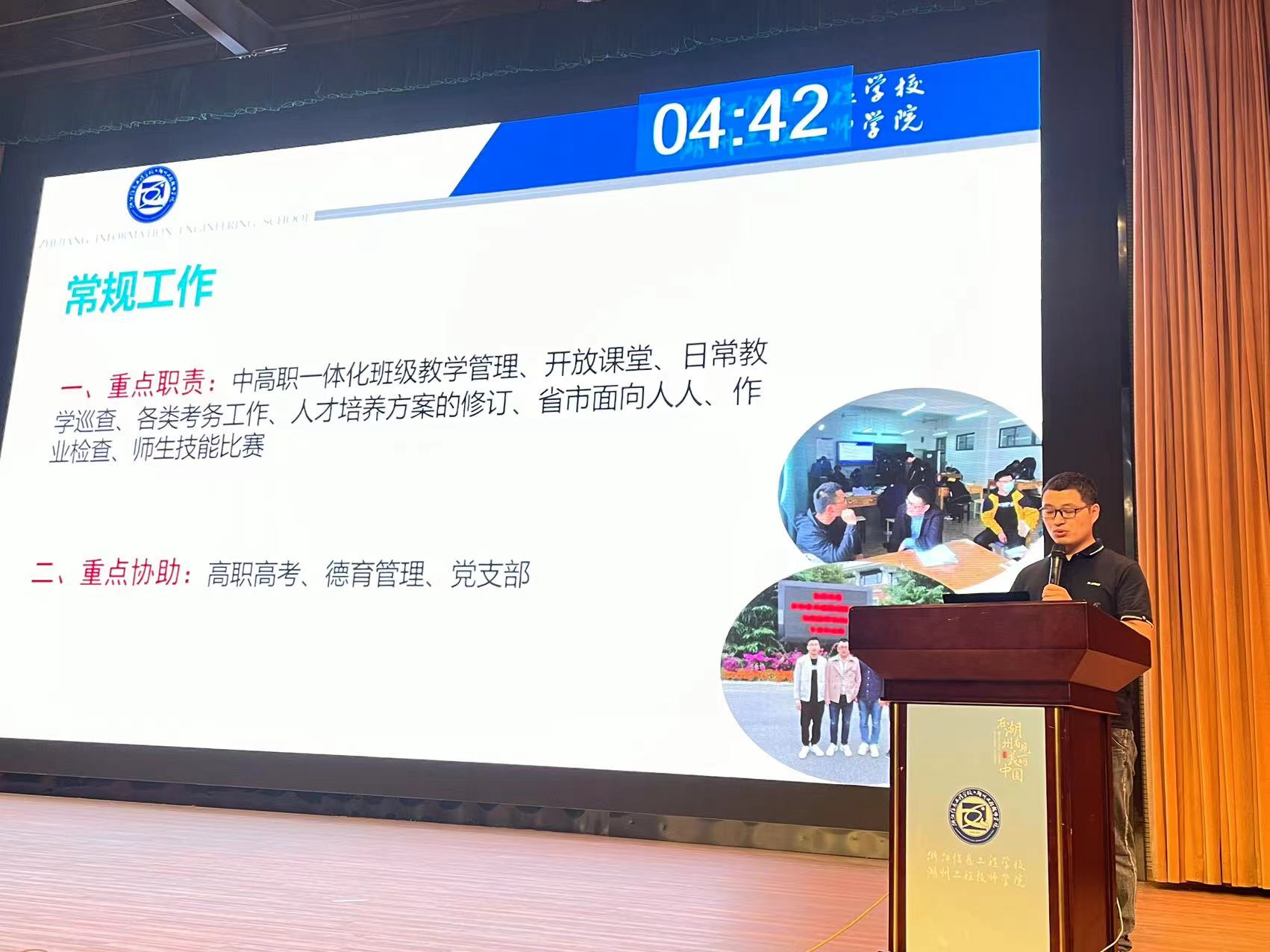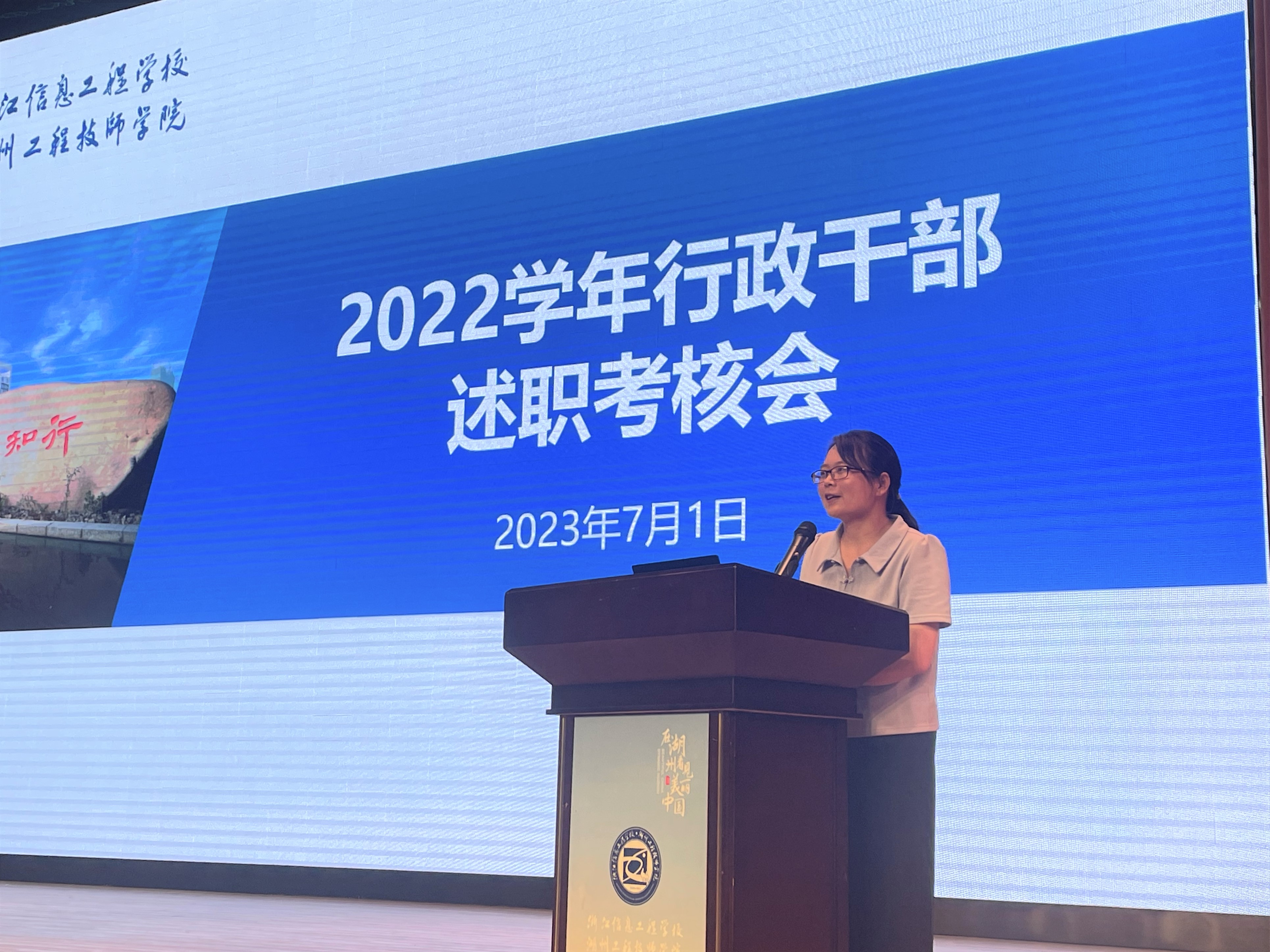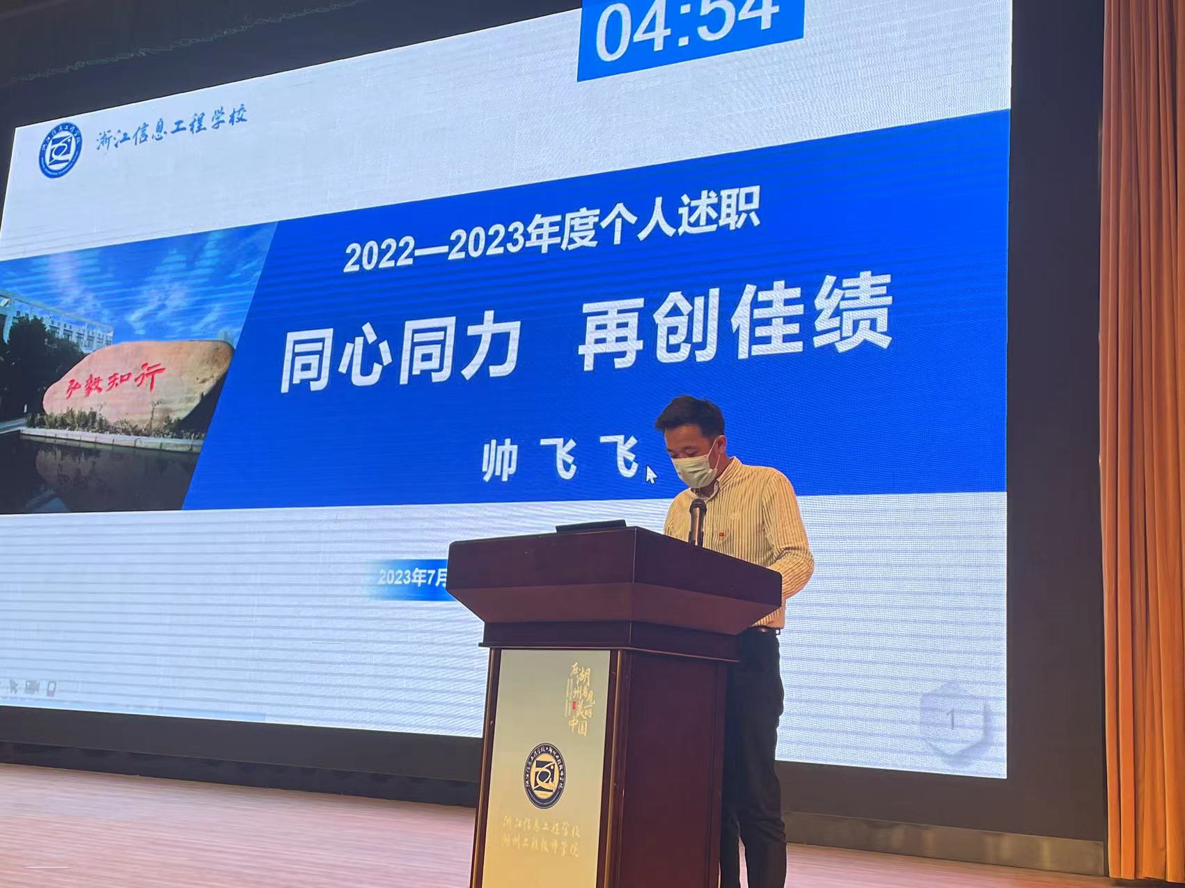 為切實加強各處室、專業部干部隊伍建設,進一步激勵提升廣大干部履職盡責、干事創新的積極性,促進全校教職工對行政干部工作的理解及支持,7月1日下午,浙江信息工程學校·湖州工程技師學院在校大會堂召開2022學年行政干部述職考核會。會議由副校長湯方榮主持。湖州市教育局職成教處副處長馬玲玲、浙江省湖州藝術與設計學校黨委書記唐海佺及學校專業部五位教師代表應邀擔任評委,學校全體教職工參加會議。