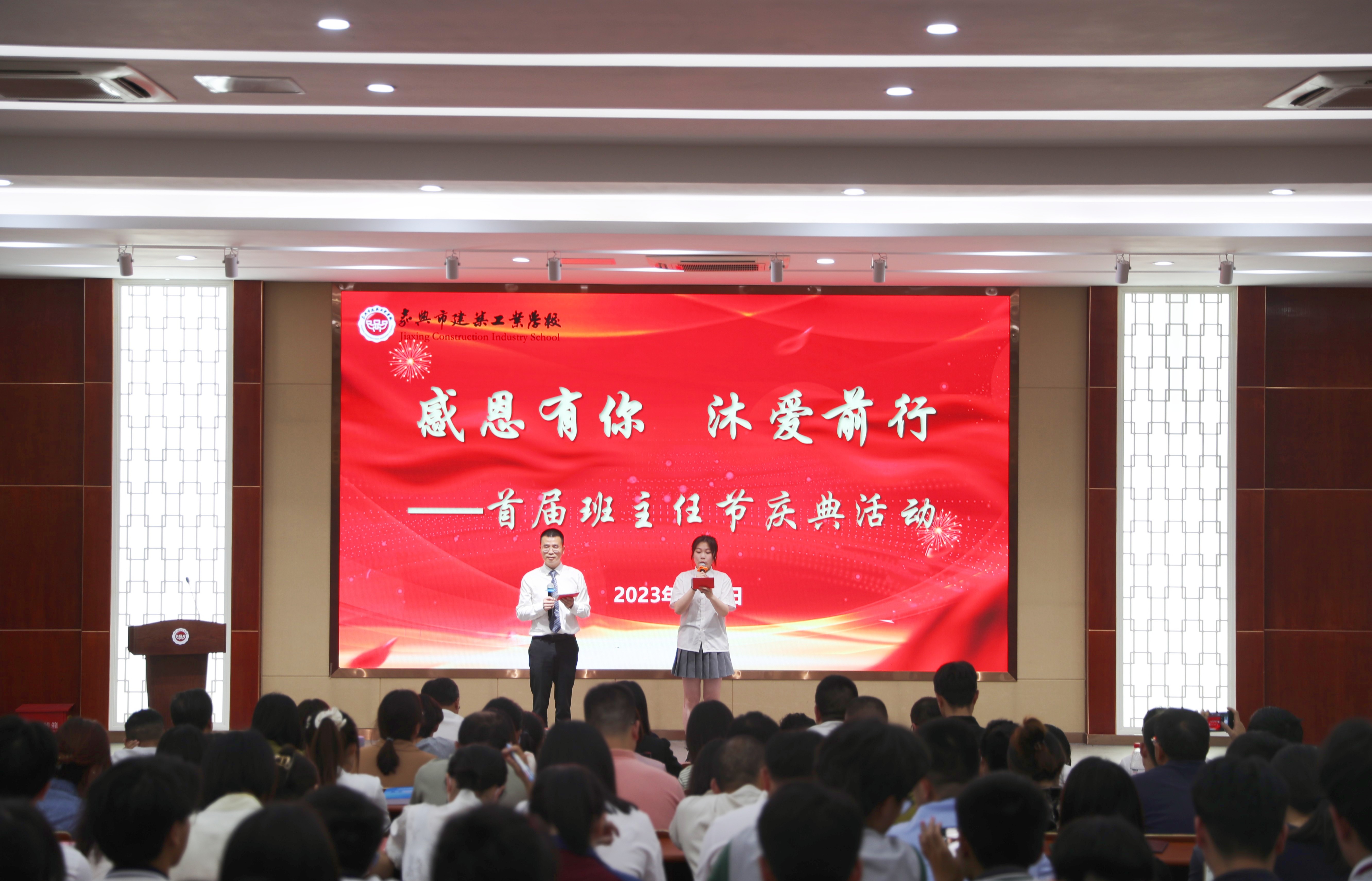 為進一步激發班主任的工作主動性與創造性,切實提升班主任的班級管理水平與育人品質,積極營造尊重班主任、爭做班主任的良好氛圍,近日,嘉興市建筑工業學校“感恩有你 沐愛前行”首屆班主任節慶典活動在樂學樓鼎建報告廳舉行。全體教職工及各班學生代表參加活動。