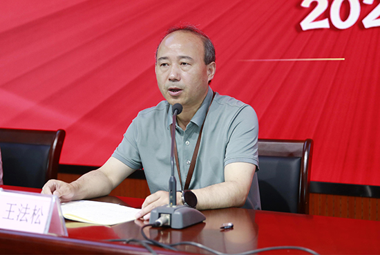 校黨委副書(shū)記、副校長(zhǎng)(全面負(fù)責(zé))王法松首先肯定了各部門(mén)和教職工在工作中取得的優(yōu)異成績(jī),對(duì)一學(xué)年來(lái)辛勤付出的教職工表示感謝。接著,王法松傳達(dá)了上級(jí)有關(guān)會(huì)議精神,并從治理能力現(xiàn)代化發(fā)展、學(xué)生素養(yǎng)穩(wěn)步提升、隊(duì)伍建設(shè)成效顯著、社會(huì)服務(wù)提質(zhì)增量、校企合作共生共贏、示范輻射功能增強(qiáng)等方面高度總結(jié)了這一學(xué)年的收獲,同時(shí)簡(jiǎn)要介紹了2023學(xué)年工作計(jì)劃。