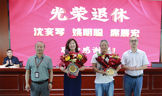 一支粉筆兩袖風(fēng)華,三尺講臺(tái)四季晴雨,滴滴汗水滋潤(rùn)桃李芬芳滿天下。本學(xué)期,沈亥琴、姚明聰、席展宏三位教師先后光榮退休,感謝他們?yōu)閷W(xué)校事業(yè)的發(fā)展奉獻(xiàn)了青春與才智。祝愿退休教師們?cè)陂_(kāi)啟幸福新生活的同時(shí),繼續(xù)發(fā)光發(fā)熱。