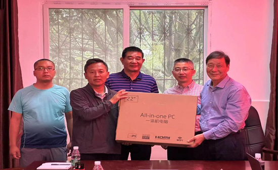 (寧波職教學會華祿年副秘書長代表寧波企業向越西縣職技校余洛阿木書記捐贈電腦)