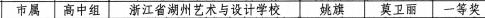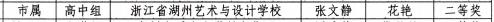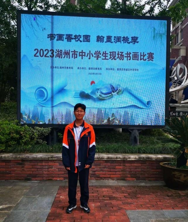 浙江省湖州藝術與設計學校工美專業部2211班姚旗同學在5月中旬參加的2023湖州市中小學生現場書畫比賽中,以戴表元的詩作《湖州》為內容,現場創作軟筆書法作品,喜獲市一等獎。2112班張文靜同學獲得“百米畫卷迎亞運”繪畫二等獎。