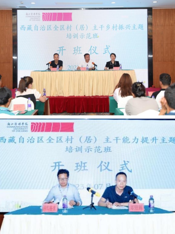 為學習貫徹習近平新時代中國特色社會主義思想,堅定不移加強黨的創新理論武裝,扎實推進主題教育,充分發揮中組部全國黨員教育培訓示范基地功能,實現學校師資力量和專業優勢的社會轉化,助力服務西藏自治區黨委組織部黨員教育培訓工作,7月8日和7月15日,由中共西藏自治區委員會組織部主辦,浙江傳媒學院培訓中心承辦的西藏自治區全區村(居)主干能力提升主題培訓示范班和全區村(居)主干鄉村振興主題培訓示范班順利開班,為來自西藏自治區拉薩、林芝、阿里、日喀則、昌都、那曲等地的200多名村(居)黨組織書記、主任,分別開展了為期7天的2期培訓。這是基地連續三年與西藏自治區黨委組織部,在黨員教育培訓方面開展的第5期培訓班。