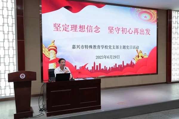 為進一步加強黨員黨性鍛煉,嚴守政治紀律和政治規矩。近日,嘉興市特殊教育學校黨支部組織全體黨員來到嘉興市建筑工業學校,開展“堅定理想信念,堅守初心再出發”主題黨日活動,校黨委書記、校長范曉春參加此次活動,并為嘉興市特殊教育學校全體黨員講授專題黨課。