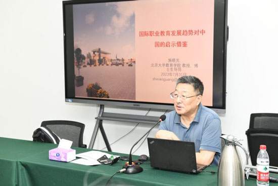 北京大學教育學院教授施曉光的講座“國際職業(yè)教育發(fā)展趨勢對中國職教改革的借鑒”立足國際視野,分析國際職業(yè)教育改革與發(fā)展的背景,闡述新職業(yè)主義觀念的形成、職業(yè)教育的關(guān)注度、職業(yè)教育制度、各國職業(yè)教育教學變革、能力為本位的職業(yè)教學模式成為主流等國際職業(yè)教育改革與發(fā)展的新趨勢,根據(jù)豐富的實踐研究,從政策出臺、制度建設(shè)、課程建設(shè)等方面闡述中國職業(yè)教育面對機遇與挑戰(zhàn)所做的探索與改革。
