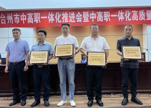 會議為臺州職業(yè)技術(shù)學(xué)院中高職一體化產(chǎn)業(yè)學(xué)院、第二批中高職一體化教科研訓(xùn)團(tuán)隊(duì)、浙江省區(qū)域中高職一體化改革試點(diǎn)學(xué)校授牌。