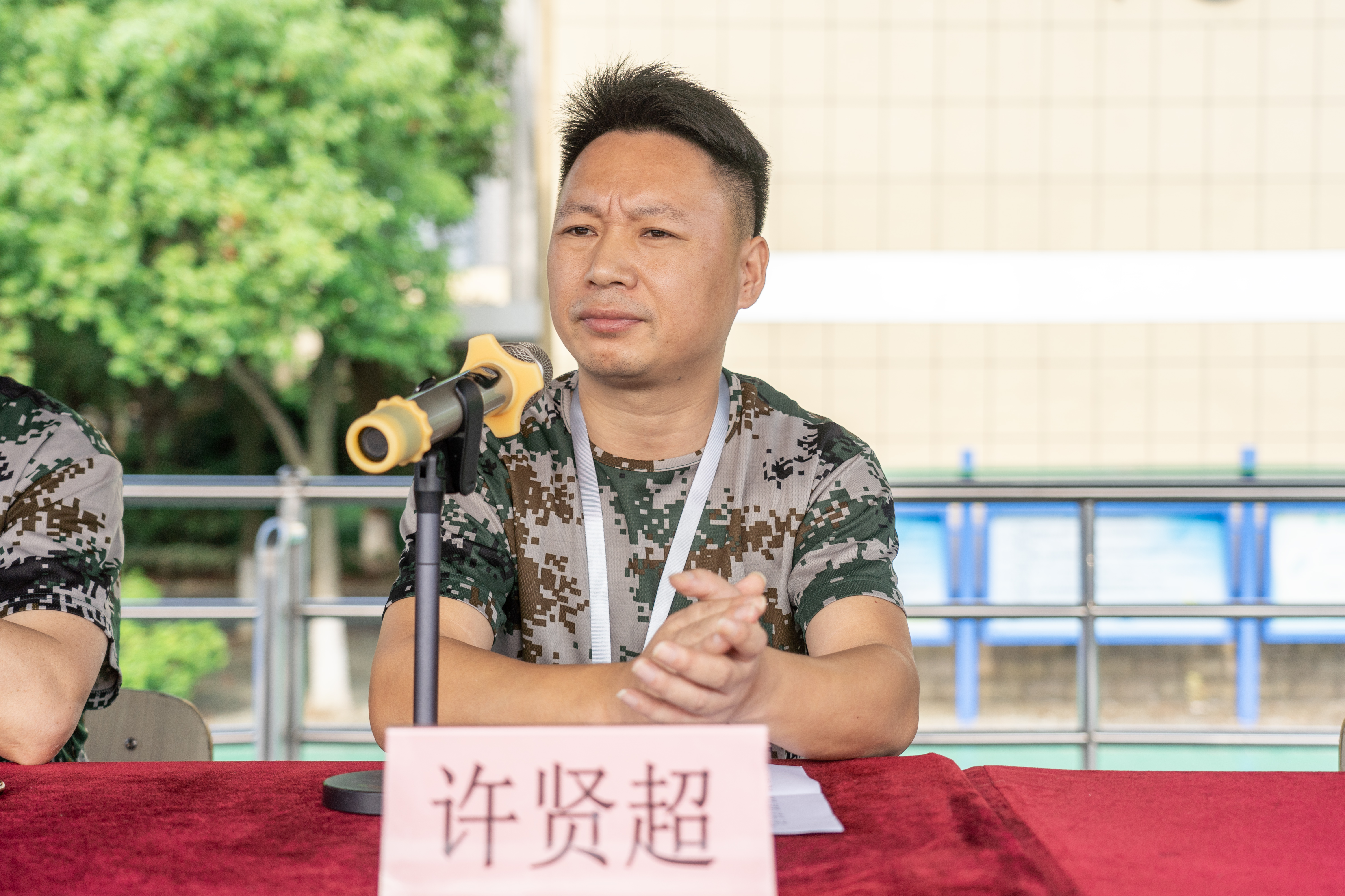 許賢超致開幕詞。他首先向2023級新生表示熱烈的歡迎,向辛勤付出的參訓教官和新生班主任表示感謝。他表示,軍訓是學校實施素質教育、加強德育工作的一項重要內容,也能鍛煉同學們的體魄,培養吃苦意識、紀律意識、團結意識。希望同學們以軍訓為起點,順利開啟自己在中職階段的新征程,努力使自己成為“有美德修身、有良技立業、有陽光身心、有文化自信”的未來工匠。隨后提出以下幾點要求:第一、各個部門要密切配合、精心組織,周密安排,認真抓好各項計劃的落實;第二、參訓同學要提高認識,端正態度,確保以高昂的斗志和飽滿的熱情投入到緊張的軍訓任務中;第三、要發揚集體主義精神和愛國主義精神,克服個人主義、小團體主義的不良意識;第四、要認真上好入學第一課,一切行動聽指揮,做到尊重教官,服從命令。