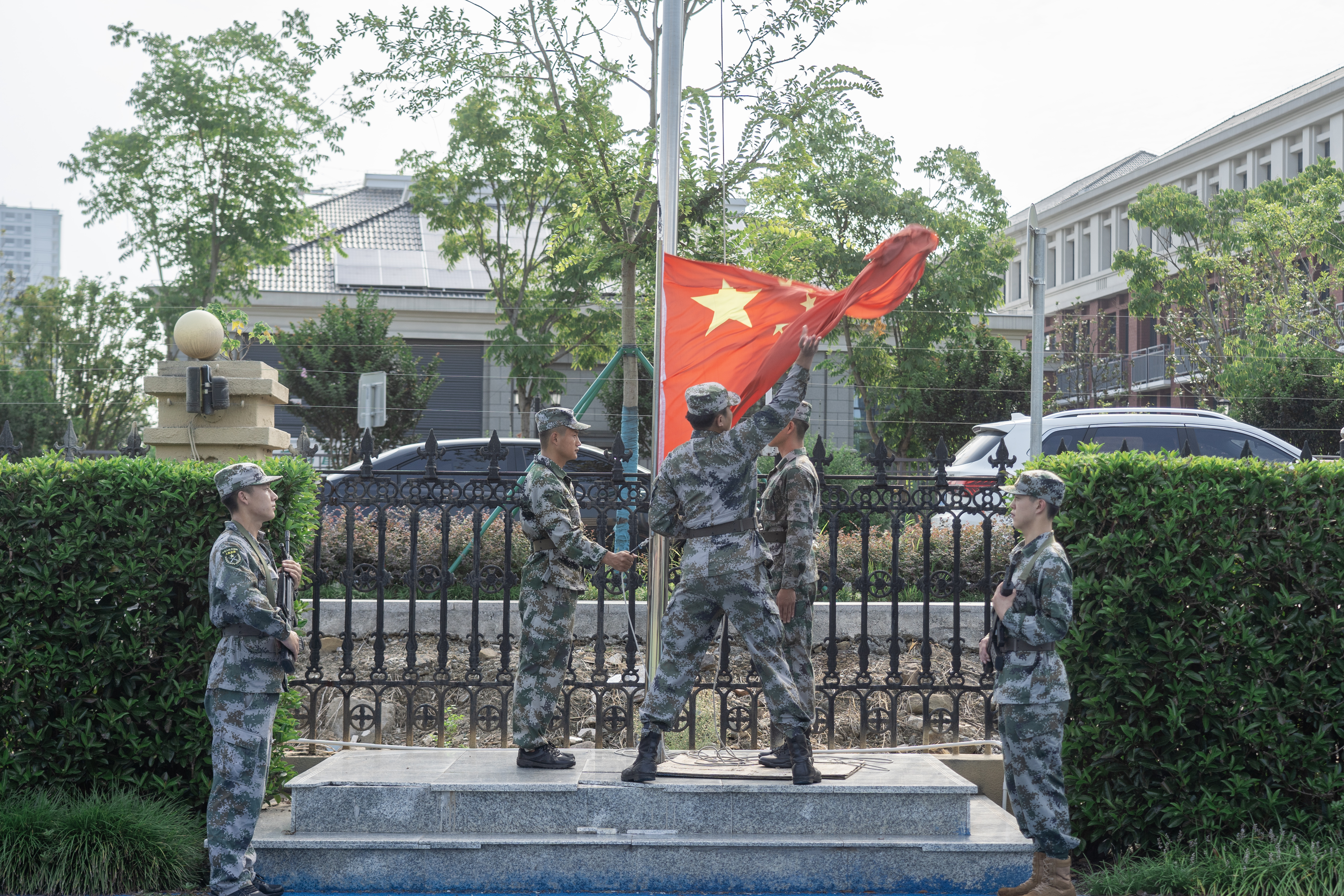在莊嚴的國歌聲中,升旗儀式舉行。