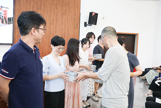 新進(jìn)教師入職儀式上,10位新教師結(jié)合自身經(jīng)歷、興趣愛好、目標(biāo)夢想等方面以視頻形式作自我介紹,方毅瑛代表學(xué)校歡迎新同事的加入。校黨委書記唐海佺為新教師們發(fā)放“入職禮盒”。