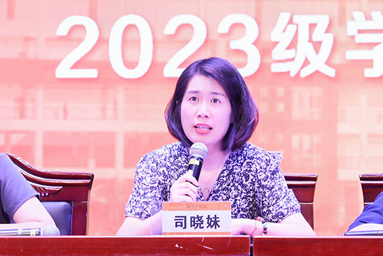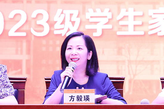 方毅瑛首先代表學校對2023級學生家長的到來表示熱烈的歡迎和衷心的感謝!她通過三問來解答家長的疑惑,一問自己:“在這所學校里,對你最重要的是什么?”二問家長:“為何選擇將孩子交給藝校來培養”;三問學生:“站在新的起點,是否已經做好了充足的準備”。