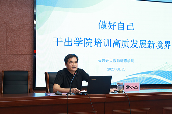8月28日上午,全體教師認(rèn)真聽取了學(xué)院院長(zhǎng)章小杰《做好自己,干出學(xué)院培訓(xùn)高質(zhì)發(fā)展新境界》的專題報(bào)告,他強(qiáng)調(diào)在新形勢(shì)下,教師要始終以翻篇為零的姿態(tài),做好自己,主動(dòng)作為,努力為實(shí)現(xiàn)“辦省一流培訓(xùn)學(xué)校”美好愿景、打響“學(xué)在長(zhǎng)興”品牌和地方終身教育發(fā)展貢獻(xiàn)力量。