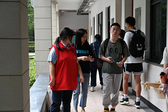 8月31日一早,校門口新生和家長有序入校,臉上洋溢著笑容。志愿者們早早來到各自的工作崗位,紛紛幫新同學搬運行李、告知流程。志愿人員的愛心守護,鋪就了一條條溫暖的愛心路。