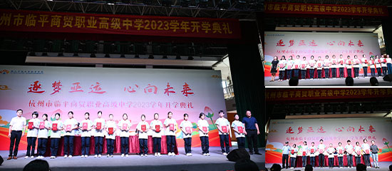 9月1日上午,杭州市臨平商貿職業高級中學2023學年開學典禮在學校藝荷樓隆重舉行。開學典禮以師生現場參與和直播收看兩種形式舉行,出席典禮的有校長沈琪、校黨委書記邵曉舟、副校長陳勝瑩、查文婷、唐瑛及校法制副校長呂洪泉,副校長唐瑛主持,典禮在莊嚴的國歌聲中拉開序幕。
