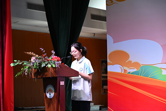 電商232班林艷同學發言。林艷同學品學兼優,今年以優異的成績考入學校電商實驗班就讀。高一新生帶著父母的叮嚀、長輩的關懷,懷揣著對新學期的憧憬,元氣滿滿地開啟人生中新一輪的挑戰。