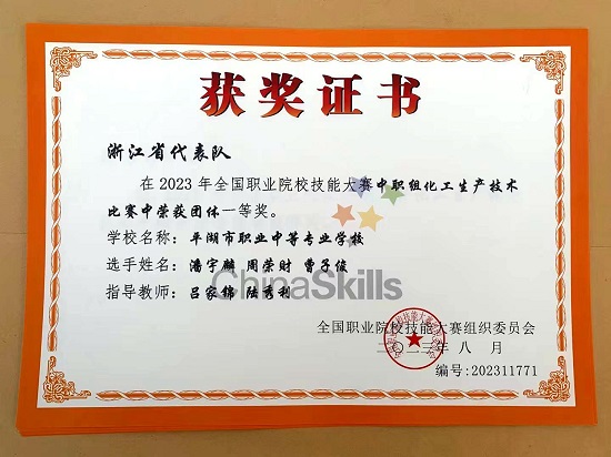 8月26日至30日,由國(guó)家教育部、國(guó)家發(fā)展改革委等多家單位主辦,全國(guó)石油和化工職業(yè)教育教學(xué)指導(dǎo)委員會(huì)等單位協(xié)辦的2023年全國(guó)職業(yè)院校技能大賽(中職組)化工生產(chǎn)技術(shù)賽項(xiàng)在淄博市工業(yè)學(xué)校舉行。平湖職業(yè)中專化學(xué)工程部原高三12班的周榮財(cái)、潘宇麟、原高二9班的曹子俊三位學(xué)生組成的浙江省代表隊(duì),在呂家錦、陸秀利、沈張迪三位老師的精心指導(dǎo)下,齊心協(xié)力,奮勇進(jìn)取,蟬聯(lián)全國(guó)技能大賽團(tuán)體一等獎(jiǎng)。
