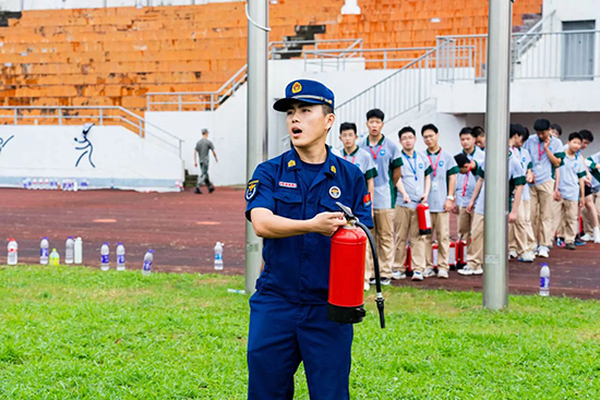 湖州鳳凰消防救援站宋教員結合校園火災發生的特點及日常防火注意事項等細節入手,用通俗易懂的語言向全體新生講解初期火災撲救、逃生自救以及發生火災如何正確報警等消防安全常識,并手把手教學生如何正確使用滅火器,讓學生現場進行實操訓練。