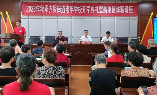 9月4日上午,2023年秋季齊賢街道老年學校開學典禮在齊賢成校4樓多功能大廳內召開,130余名老年學員參加開學典禮。