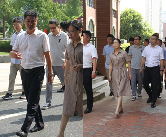 調研組一行在富陽區職教中心黨委書記、校長孫良杰引導下,參觀學校教學樓、法制公園、民族文化公園、操場、學生生活區、實訓樓等 ,每到一處,調研組仔細察看,不時提問,共同探討,對學?;厩闆r、發展內涵、創新舉措有了“實景式”的了解。