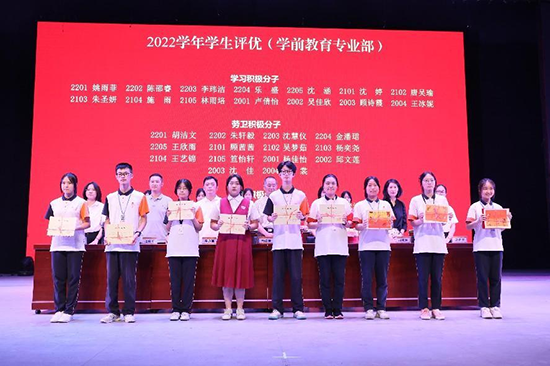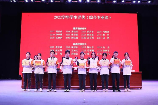 大會在莊嚴的國歌聲中拉開序幕。副校長費永軍、司曉妹、沈慶軍先后宣讀了2022學年省市級技能大賽獲獎名單,校級獎學金、“三好學生”“優秀學生干部”“優秀團員”“單向積極分子”“文明班級”以及“優秀團支部”等表彰文件。