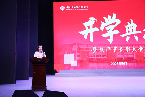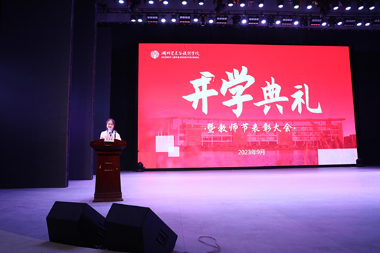 9月8日下午,浙江省湖州藝術與設計學校2023學年開學典禮暨教師節表彰大會在學校星海演出廳舉行。黨委書記唐海佺,黨委副書記、校長方毅瑛,黨委委員、副校長費永軍、司曉妹、沈慶軍、馮君彥、凌怡出席,部分師生代表到現場參加,其余班級同步觀看直播,大會由司曉妹主持。
