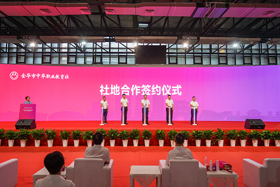 儀式上開展了“同心助富·職教有為”社地合作簽約儀式,武義縣新宅鎮(zhèn)、柳城畬族鎮(zhèn),磐安縣安文街道、新渥街道與金華市職教社共同完成簽約。