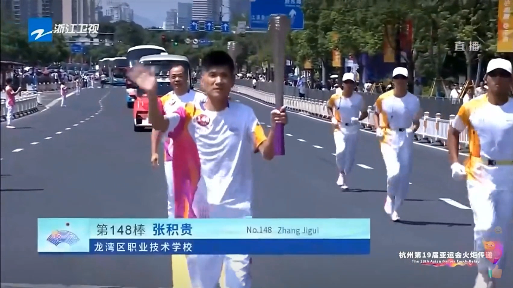 9月15日,杭州第19屆亞運會火炬傳遞溫州站活動正式啟動,溫州市龍灣區職業技術學校教師張積貴擔任第148棒火炬手。