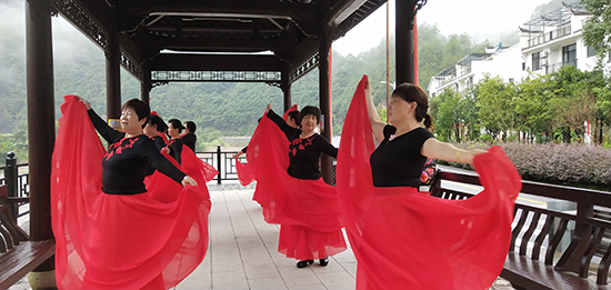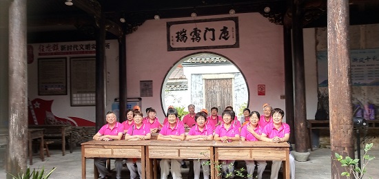 9月15日清晨,旗袍隊隊長潘連娣老師帶隊于河畔休閑亭,在優美的樂曲聲中,隊員們翩然起舞,似蝴蝶、似孔雀,雖雙鬢如霜,皺紋如轍,卻映襯出銀齡教師唯美向上、所樂所為,給寧靜的小山村增添了一道亮麗的風景線。