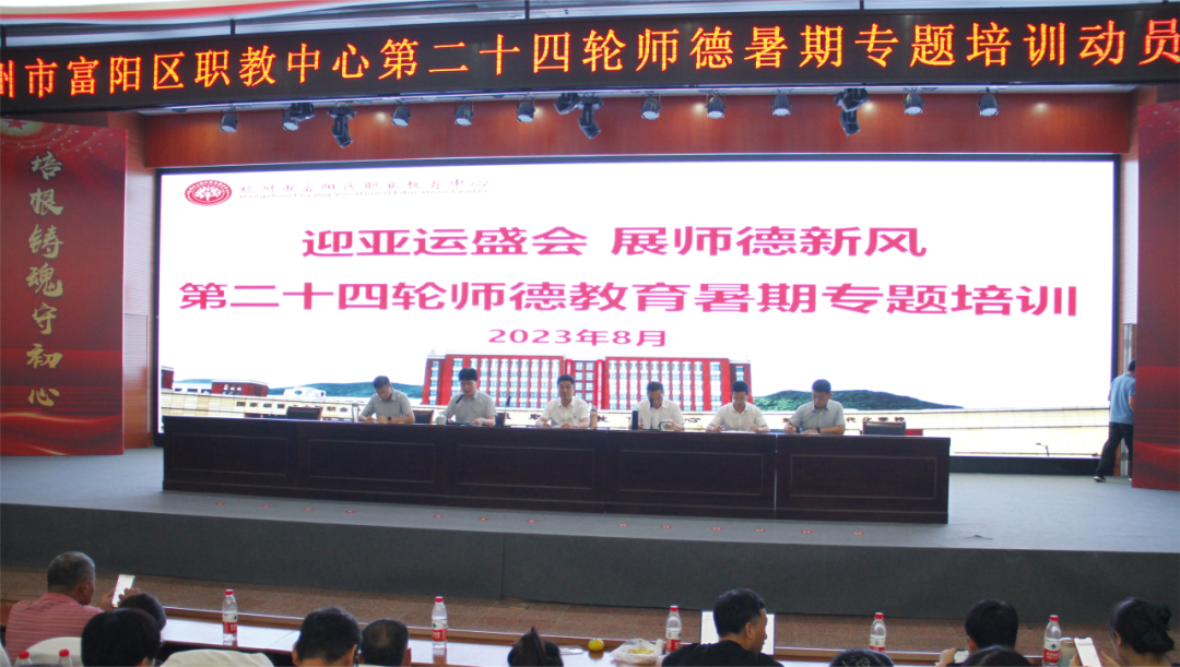 為迎接杭州第十九屆亞運會的召開,深入開展主題教育活動和推動師德師風建設工作,展現新時代教師嶄新的精神風貌和良好的師德形象,根據教育局的統一部署安排,杭州市富陽區職業教育中心結合學校實際開展第二十四輪師德教育暑期專題培訓。本次培訓按照集中培訓與分散培訓相結合,主要通過專題學習、優秀教師師德報告、師風問題查擺、師德問題典型案例分析、綜合素養測試等形式組織開展教師校本師德教育專題培訓活動,時間為8月23日—9月底,其中,8月23日至25日為集中培訓時間。