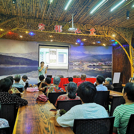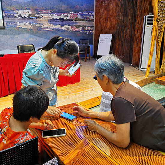 來(lái)自安吉縣技師學(xué)院的季艷茹老師通過(guò)“面對(duì)面、手把手”實(shí)操互動(dòng)型教學(xué)的方式,給老人們演示了連接微信表情包、查找應(yīng)用、下廚房美食、美圖秀秀、實(shí)時(shí)公交、網(wǎng)上購(gòu)買高鐵票、網(wǎng)上預(yù)約掛號(hào)繳費(fèi)等功能。老人們個(gè)個(gè)興趣高漲,圍著季老師要求“一對(duì)一”指導(dǎo)。季老師逐個(gè)步驟反復(fù)講解,直到老人完全掌握操作步驟。幫助老年人不與時(shí)代脫節(jié),真正享受到數(shù)字化紅利。