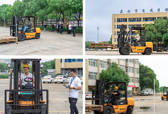本次比賽分兩個環(huán)節(jié)進行。筆試環(huán)節(jié)重點考察起重裝卸機械操作工的國家職業(yè)標準的相關內容,此外增加了相關新技術、新知識、新技能等部分內容;實際操作環(huán)節(jié),參賽選手需在5分鐘內,按規(guī)定線路前進、倒車繞樁、貨架疊放、停放入庫等環(huán)節(jié),考察選手叉車安全駕駛水平和裝卸作業(yè)效率。首先進行第一環(huán)節(jié)的考核,選手們奮筆疾書,完成了理論知識的筆試考試。第二環(huán)節(jié)實操比賽現場,選手們屏氣凝神,按照規(guī)定路線精準、謹慎、游刃有余地完成一個個動作。熟練地倒車、轉彎、快速準確地過桿,展示出行云流水般的叉車駕駛技能,贏得了現場觀眾及評委的陣陣贊嘆。