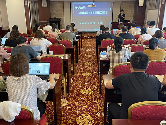 9月24日上午,杭州教育科學研究院副院長、杭州職成教中心主任洪彬彬主任作《信心與變革:品牌教研引領教師發展的區域實踐》講座。洪主任從杭州職教的故事引入,與教師們分享了“杭派教法”的典型案例,并從職業教育高質量發展角度闡述中職的使命與未來。洪主任的講座高屋建瓴,從政策的高度與理論的深度為參訓教師指明了教科研的方向。