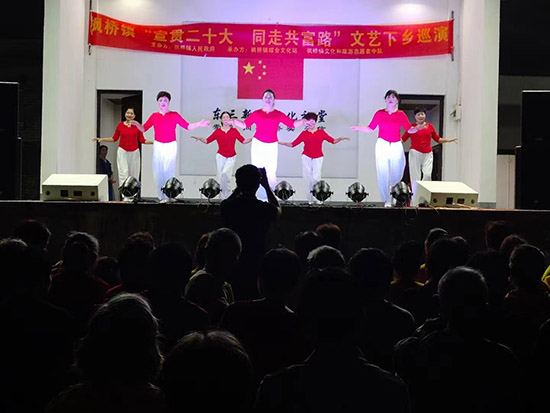 據悉,此文藝匯演由楓橋鎮人民政府組織,楓橋鎮綜合文化站、楓橋鎮社區教育學校、楓橋鎮楓之韻藝術團承辦。演員均為本鄉本土的文藝愛好者,以楓橋鎮楓之韻藝術團成員為骨干。為宣傳貫徹黨的二十大精神,在鎮域內31個村(社區)開展“宣貫二十大 同走共富路”送戲下鄉文藝巡演,為村民提供精神食糧,豐富群眾的文化生活。(孫文明)