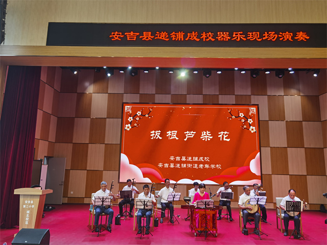 為迎接中秋和國慶佳節,9月28日上午,安吉縣遞鋪區域性中心成人文化技術學校老年器樂隊在安吉縣第六小學報告廳演出曲目《拔根蘆柴花》,邀請安吉縣實驗初中的教師程繼民現場指導。樂隊成員由來自各行各業的退休老人組成,他們喜愛音樂,自學成才,將中西方樂器完美融合在一起,奏出美妙的樂章。