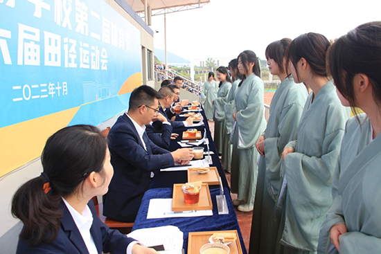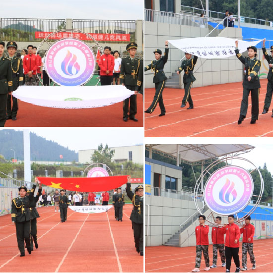 杭州亞運的圣火剛剛熄滅,衢州旅游學校的田徑場上,校園會圣火已點燃!10月9日,浙江省衢州旅游學校第二屆體育節暨第十六屆田徑運動會隆重開幕。全校師齊聚田徑場共同參加儀式。衢州旅游學校黨支部書記、校長曾福田,副書記、副校長徐善群,副校長吳國盛,副校長姚劍,校長助理嚴久官,校長助理兼教務處主任江小三等相關領導出席開幕式。