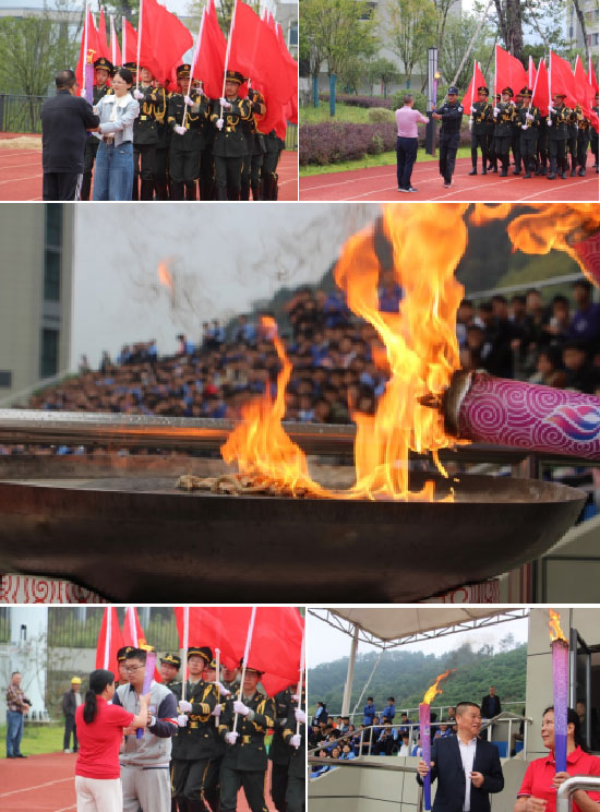 當星星運動之火在田徑場上點燃時,現場歡呼一片。火炬由優秀師生代表余志江、劉利寧、余艷蓉、徐國勤、毛麗雯、江日群、邵曉娟7位老師和潘晨瀾、傅利雅、葉誠3位學生以及優秀校聘員工胡雄明共11位師生共同完成接力。這不僅是簡單的火炬交接,它是前輩教師的標桿示范,是新生力量的青春活力,是衢旅精神“坤德含弘 匠心善美”的傳遞。當曾福田校長點燃衢旅校運會的“圣火”盆時,標志著在這場盛會中,每個青春應當“燃”不讓!
