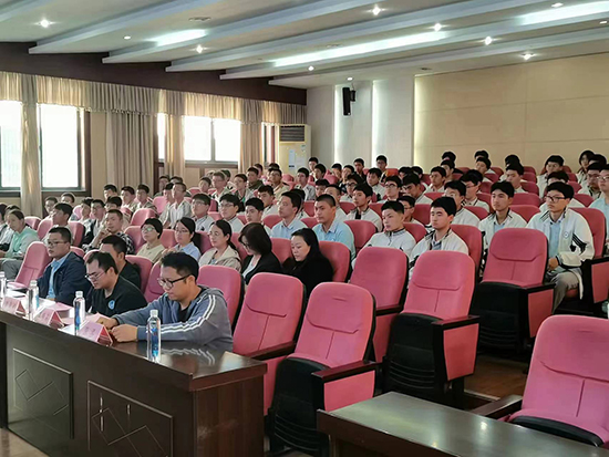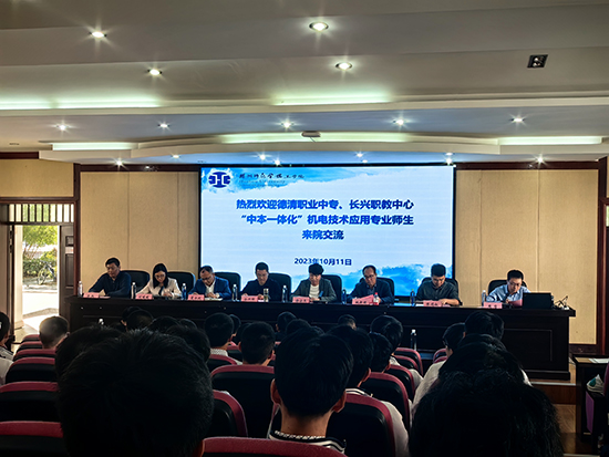 在湖州師范學院工學院匯報廳,工學院副院長周哲、工學院黨委副書記劉媛媛接待了兩個班級的師生。湖州師范學院教務處副處長徐云杰對同學們在高中階段的學習提出要求,并介紹了大學階段的具體學習任務。