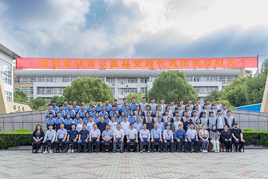 最后,若爾蓋縣黨政代表團(tuán)、嘉興平湖兩地相關(guān)單位領(lǐng)導(dǎo)在校門(mén)口與若爾蓋學(xué)生們共同合影。(徐登峰/文 楊磊/圖)