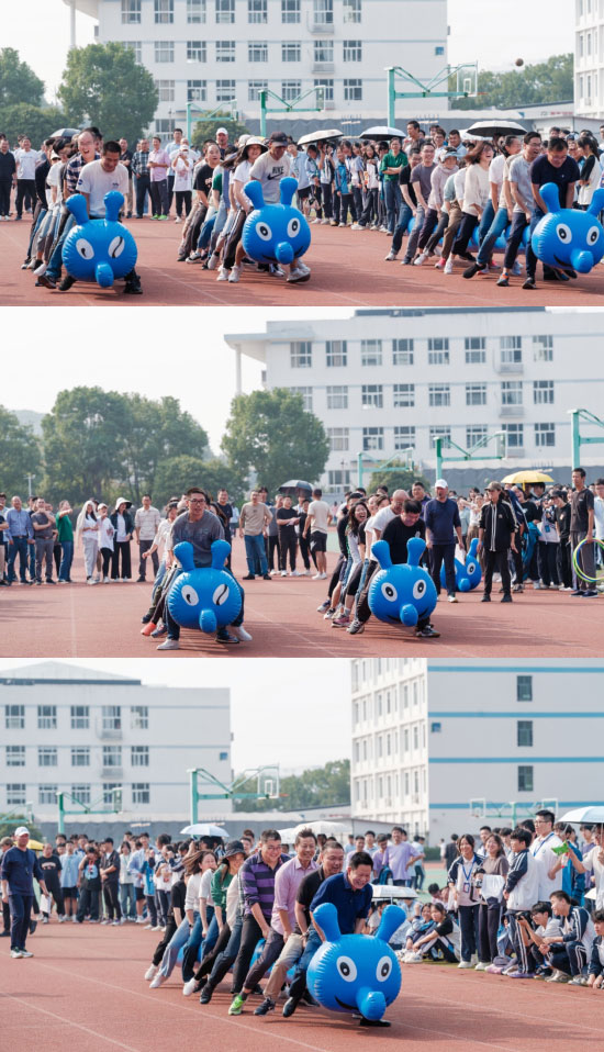 今年的教工運動會分為個人項目和集體項目,個人項目除了傳統項目保齡球和飛鏢之外,新增了與時俱進的“套圈圈”和懷舊的“滾鐵環”項目;集體項目除了保留傳統的毛毛蟲和同心鼓之外,新增了更具有趣味性的接力項目“螃蟹走”。