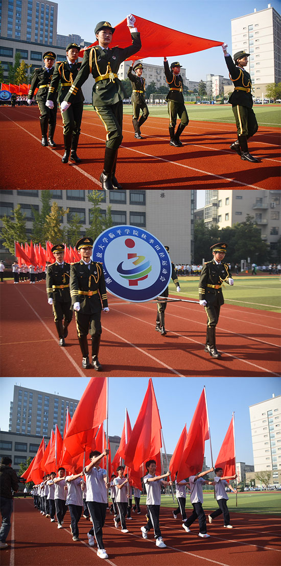 伴隨著雄壯的《運動員進行曲》,在國旗隊、會徽隊和紅旗隊的引領下,全院46個班級的運動方隊英姿颯爽、精神飽滿地有序入場,走向主席臺接受檢閱。整齊劃一的步伐、精準有力的動作、嘹亮激情的口號、別出心裁的展示,盡顯學院學子蓬勃向上的精神面貌!