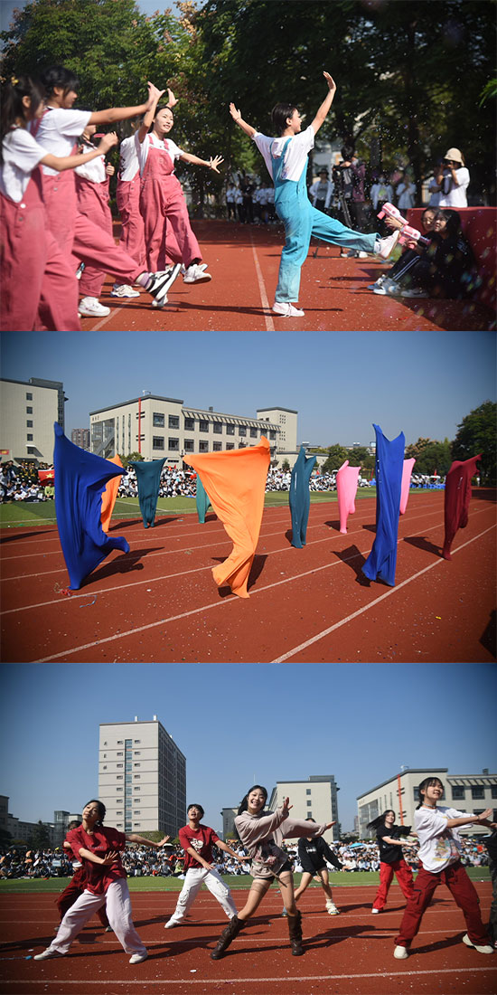 高二年級組先后帶來了創意被子舞、街舞秀、音樂劇等節目,觀眾連連叫好,現場掌聲此起彼伏。