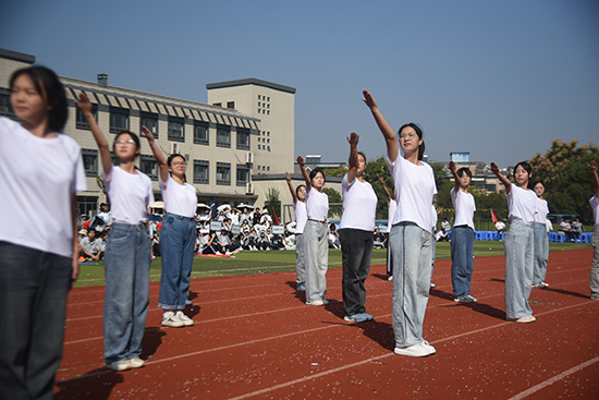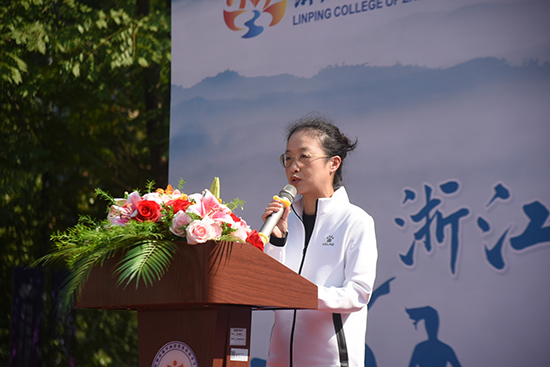 沈琪宣布浙江開放大學臨平學院第十三屆秋季運動會開幕。現場彩旗飄揚,掌聲雷動,為期兩天的校運動會正式拉開帷幕。